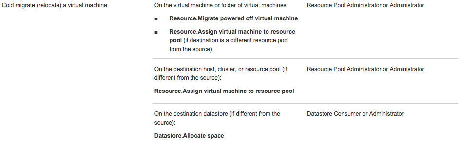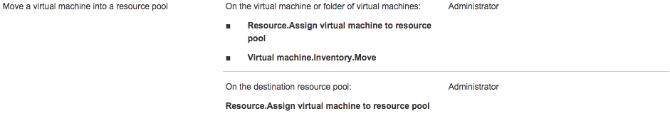 - Moving an object in the inventory hierarchy requires appropriate privileges on the object itself, the source parent object (such as a folder or cluster), and the destination parent object.