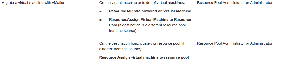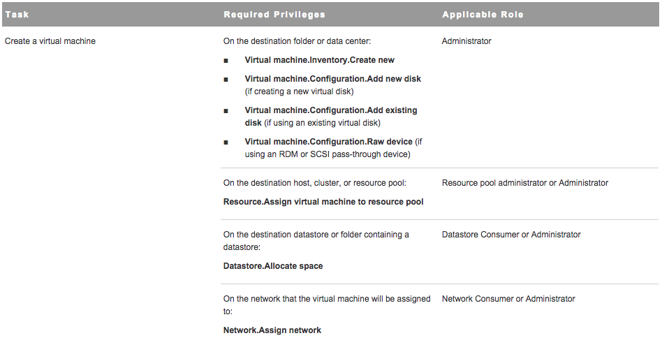 Many tasks require permissions on more than one object in the inventory. You can review the privileges that are required to perform the tasks and, where applicable, the appropriate sample roles.