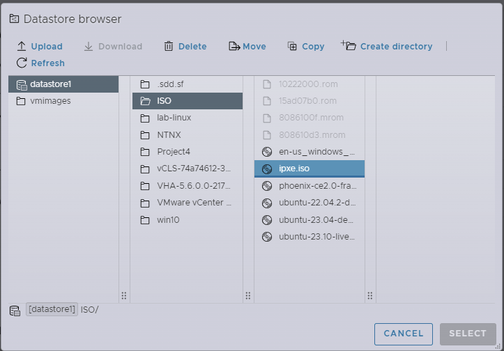 Now shutdown and boot the Linux from the iPXE iso. Follow the same steps and the slideshow above, except that you will use the ipxe.iso image now: