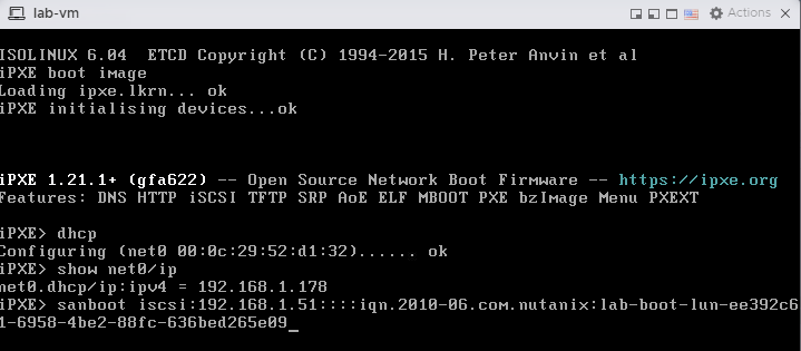 sanboot iscsi:192.168.1.51::::iqn.2010-06.com.nutanix:lab-boot-lun-ee392c61-6958-4be2-88fc-636bed265e09